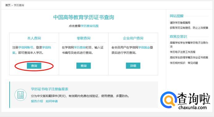 找到“本人查询”区域,点击“查询”按钮。