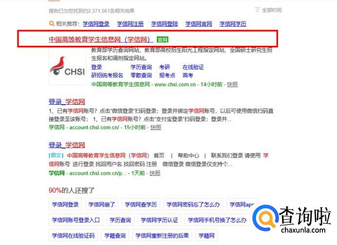 打开浏览器输入“学信网”然后点击搜索。