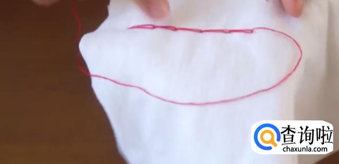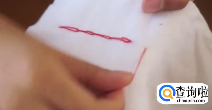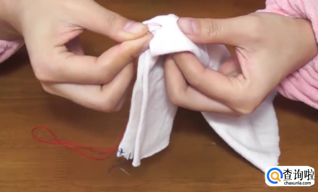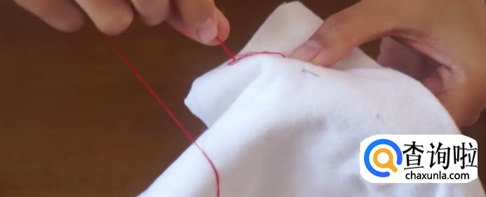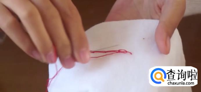 准备双股线从底部穿出,从顶端的位置戳进去将针线穿过来。