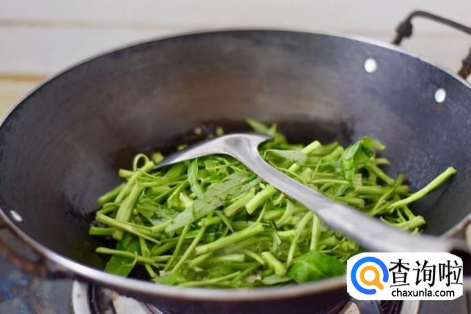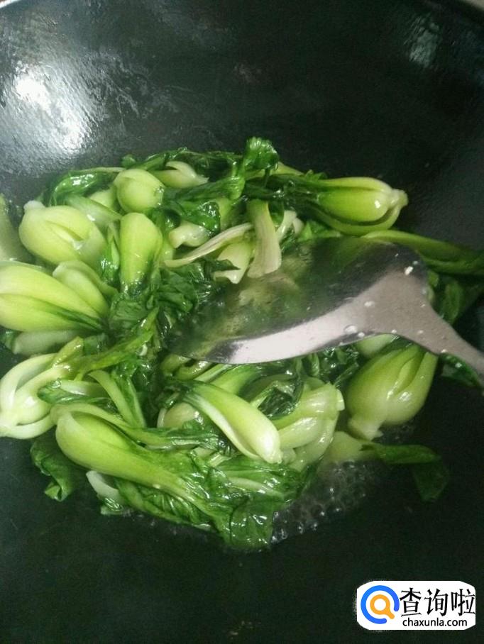 准备出锅时放入切好的蒜末,和少量鸡粉,翻炒均匀,青菜比较易熟,不易炒的时间过久。