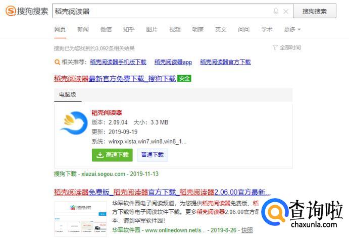 首先打开浏览器,搜索“稻壳阅读器”,将稻壳阅读器下载安装到电脑上。