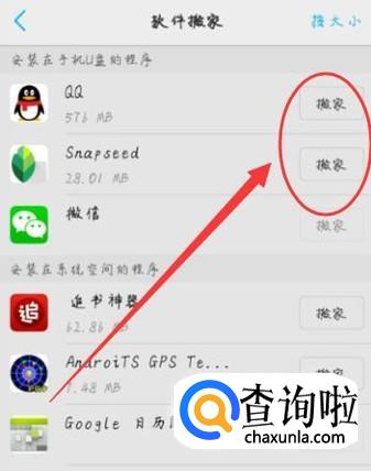 进入之后,点击“搬家”即可为将一些软件搬到SD卡。