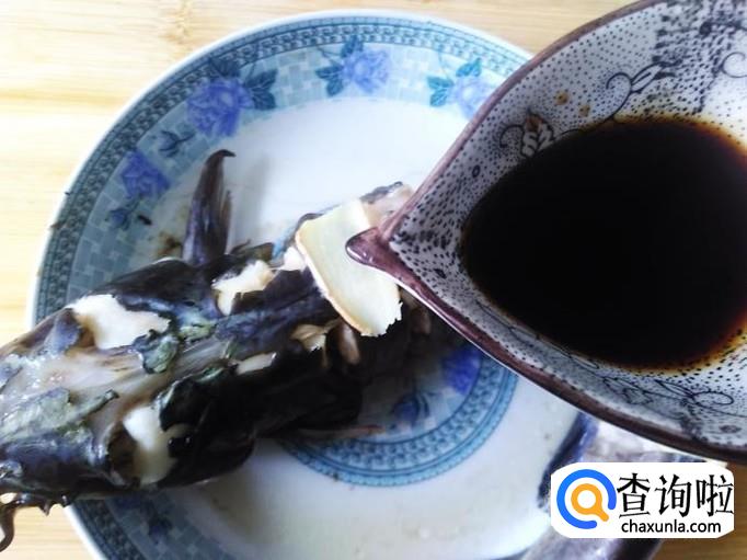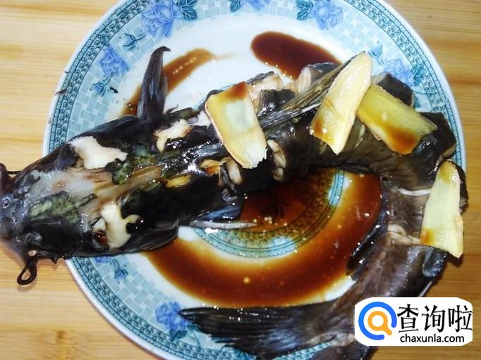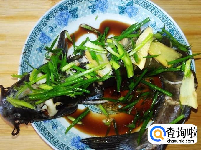 浇2勺生抽到鱼面,再铺上香葱。
