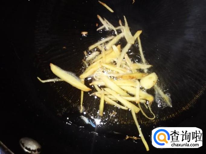 热锅下油,放姜丝进去爆香。