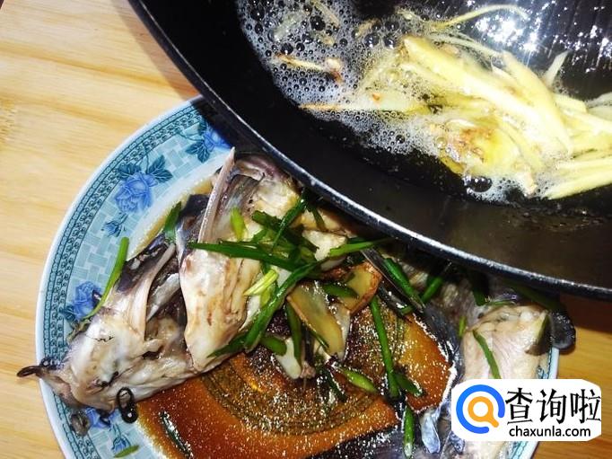 然后把油和姜丝倒到鱼面上就可以了。