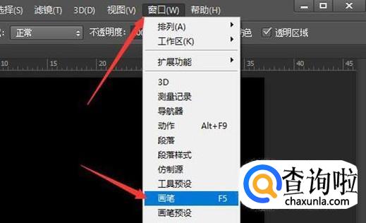 首先,打开PS CS6软件,点击窗口菜单,点击画笔命令。或按快捷键F5。