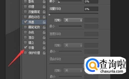 在画笔控制面板中再勾选多一个平滑项,这样就设置好了。
