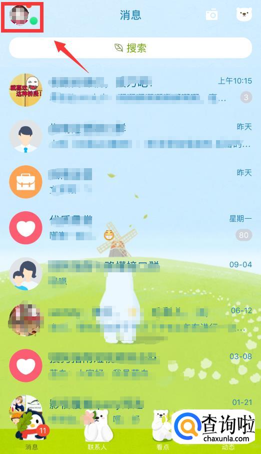 登录后,点击左上角的头像。