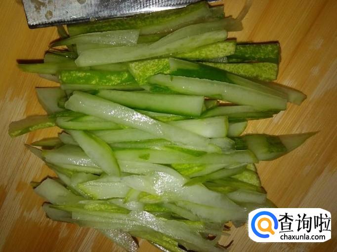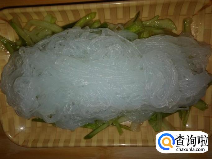 干丝粉70克,黄瓜100克,酸梅醋3勺,蒜蓉、泡椒适量,生抽1勺。