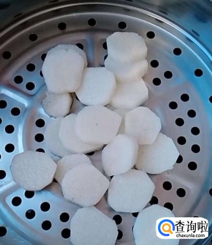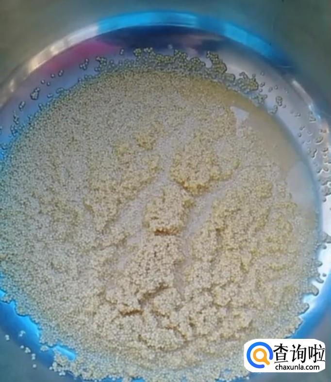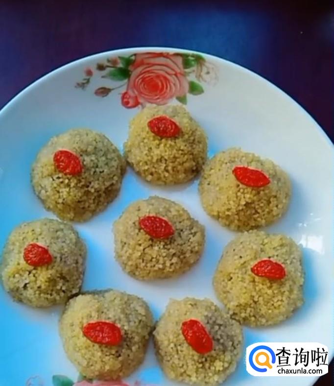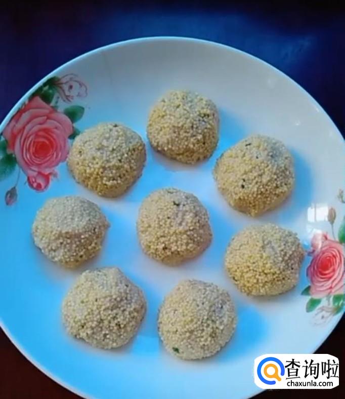 用虎口捏出小球,裹上小米,上锅蒸20分钟。