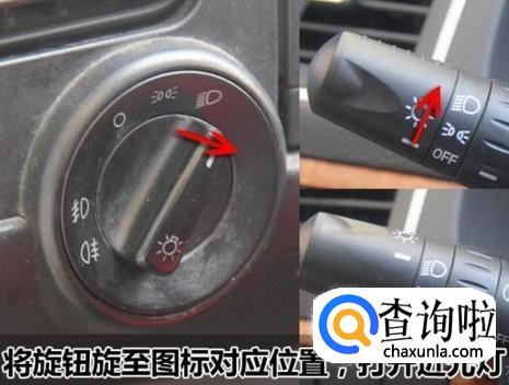 学员操作:将远光灯交换为近光灯,并开启雾灯。