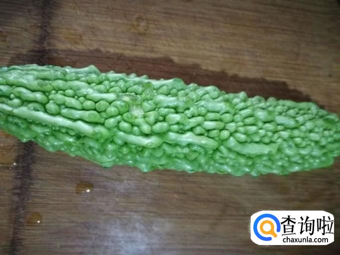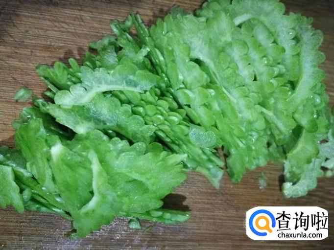 将苦瓜对半剖开,去除内瓤后切成片备用。