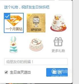 然后点击礼物中要赠送礼物好友右侧的生日快乐,如下图所示。
