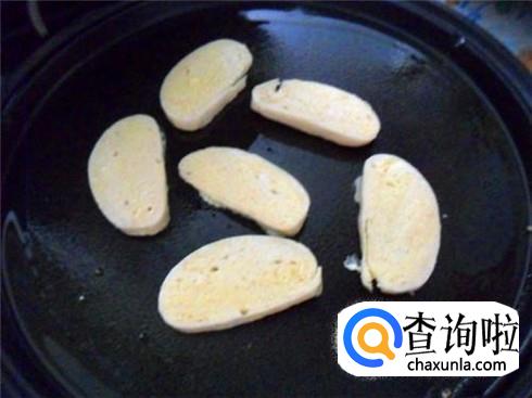 馒头不要太软的那种,最好是有些发硬的馒头,这样制作起来更简单容易且口感更好。馒头切成片,不用太厚不然烤好之后不是那么的酥脆。