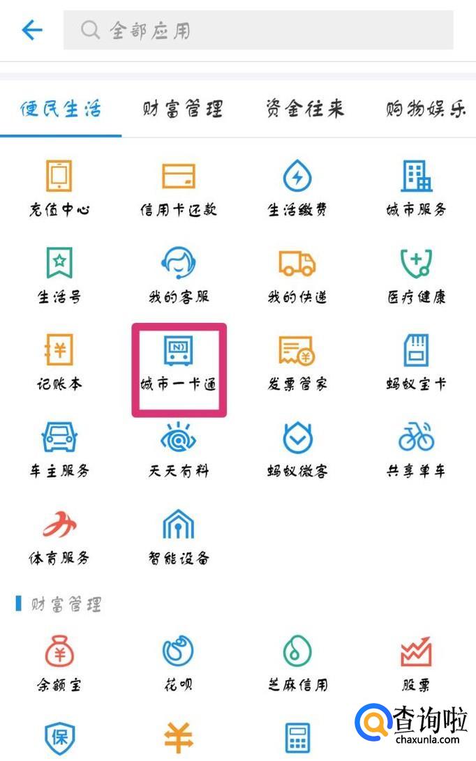 打开“支付宝”,选择“城市一卡通”选项。