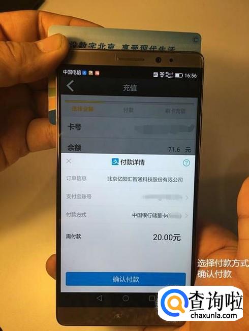 进入相应的页面,将公交卡放置于手机后面的NFC感应区。