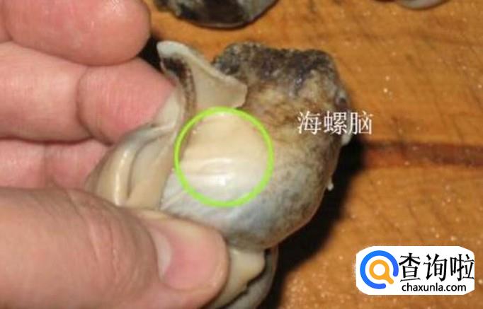 这个俗称海螺脑的东西,其实就是在海螺头的部分,有两个小球球一样的东西,它在海螺肉里面,这个东西若是吃多了的话就会头晕而且恶心。海螺的脑神经分泌的物质会引起食物中毒。