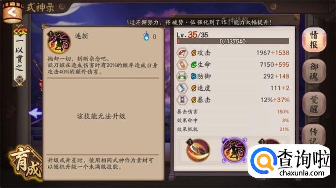 在普通的剧情副本中妖刀姬也是很实用的,虽然是单点输出式神但是可以连斩好几个对象,因此出场率比较高。而且妖刀姬的输出比大部分的式神要高很多,相对比较好培养。