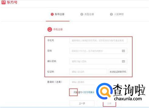 输入手机号,密码,验证码,然后勾选同意协议,再点击“注册”