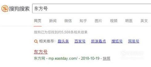 打开搜狗浏览器,在搜索框中输入“东方号”,点击第一个网站进入官网。