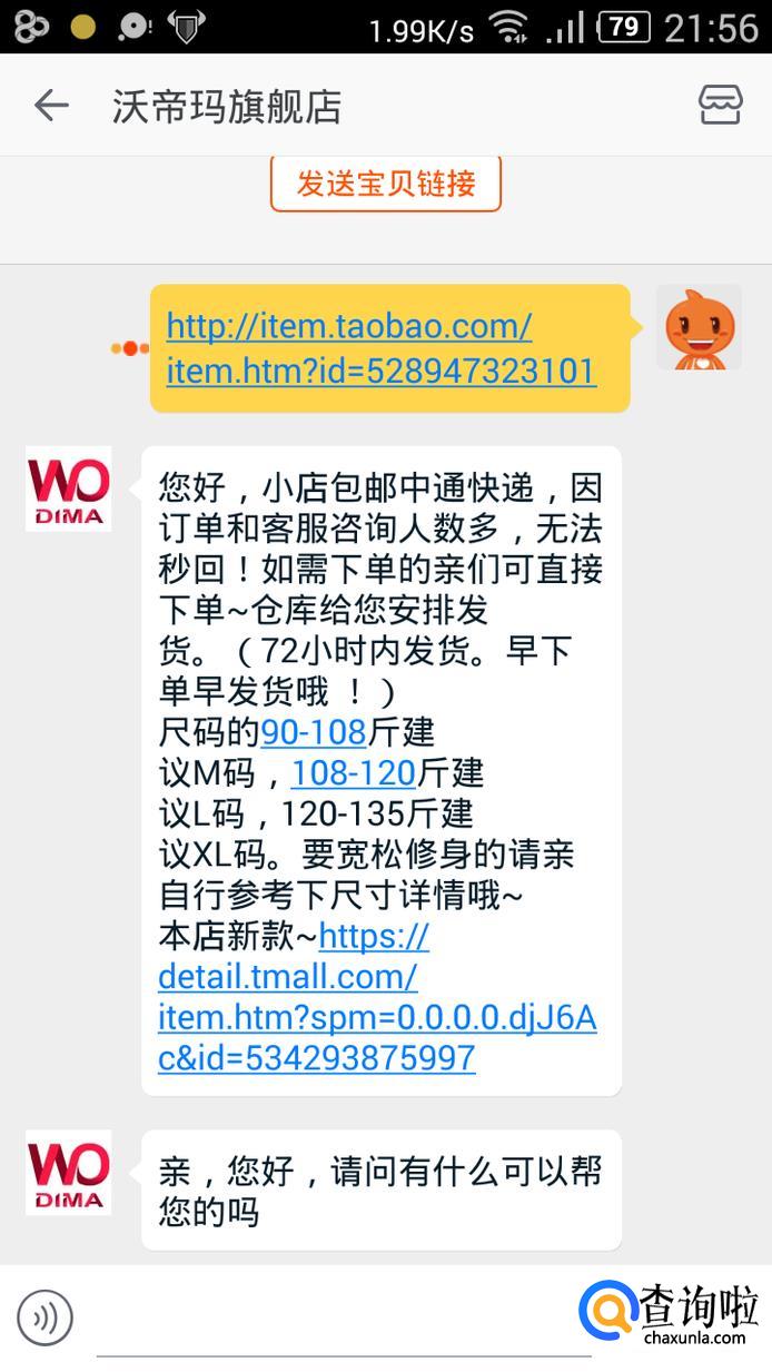 选定宝贝,可以与卖家在线交流,询问关于快递,价格,质量,规格等的问题。通过阿里旺旺可以直接和卖家交流。