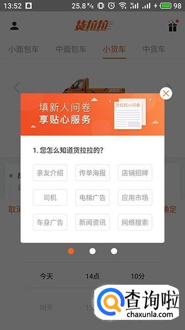 进入货拉拉首页,在上方能够选择不同的货车类型,可以满足不同用户的需求。