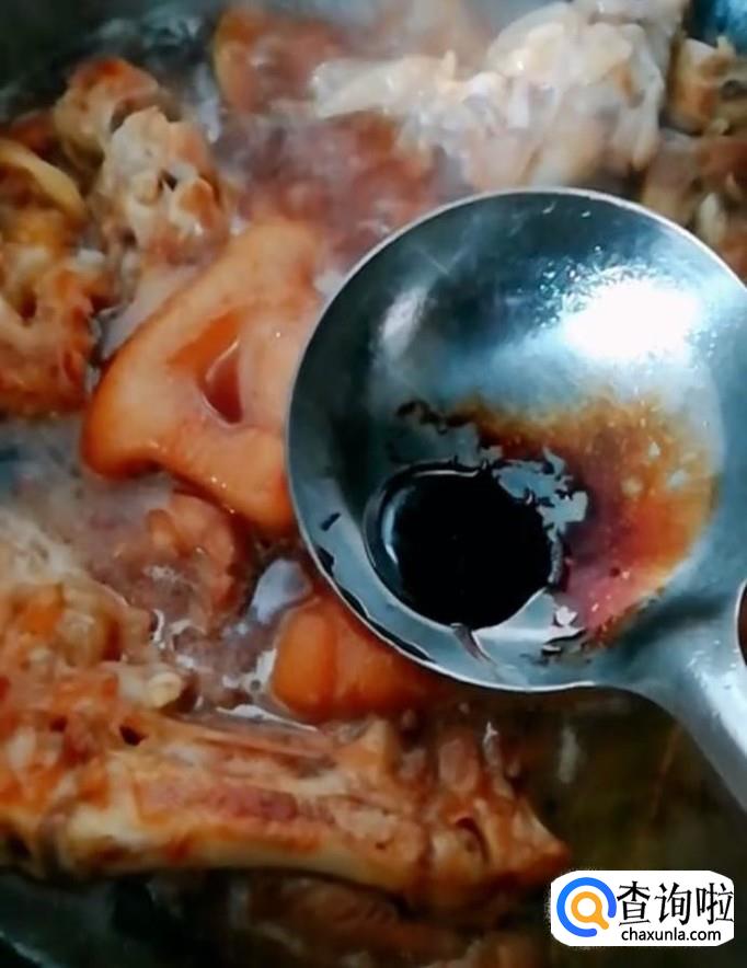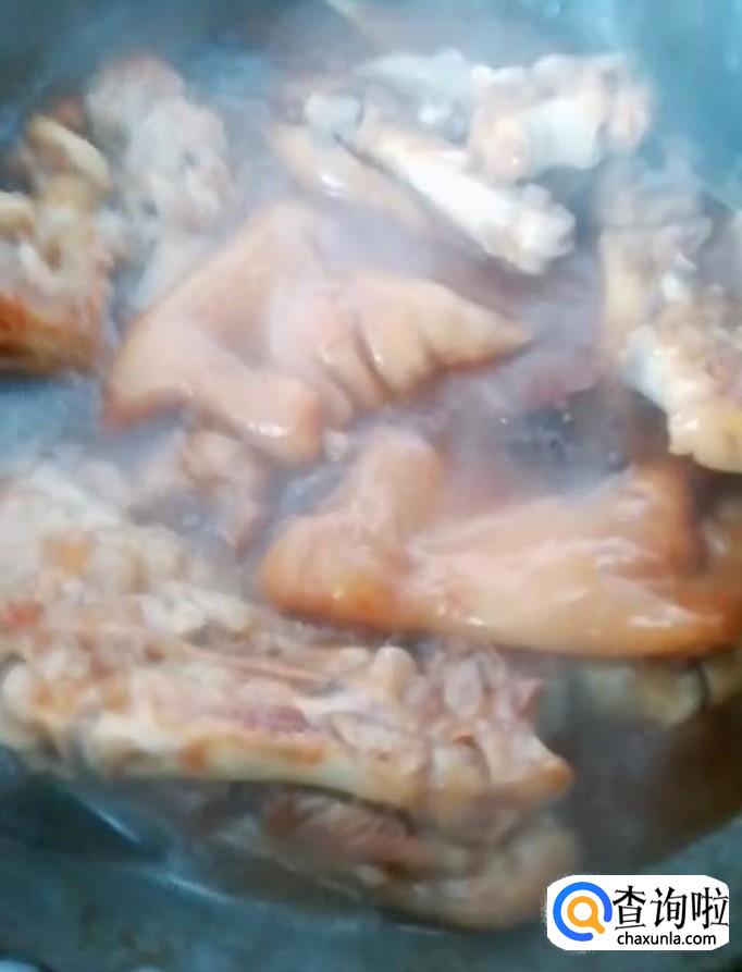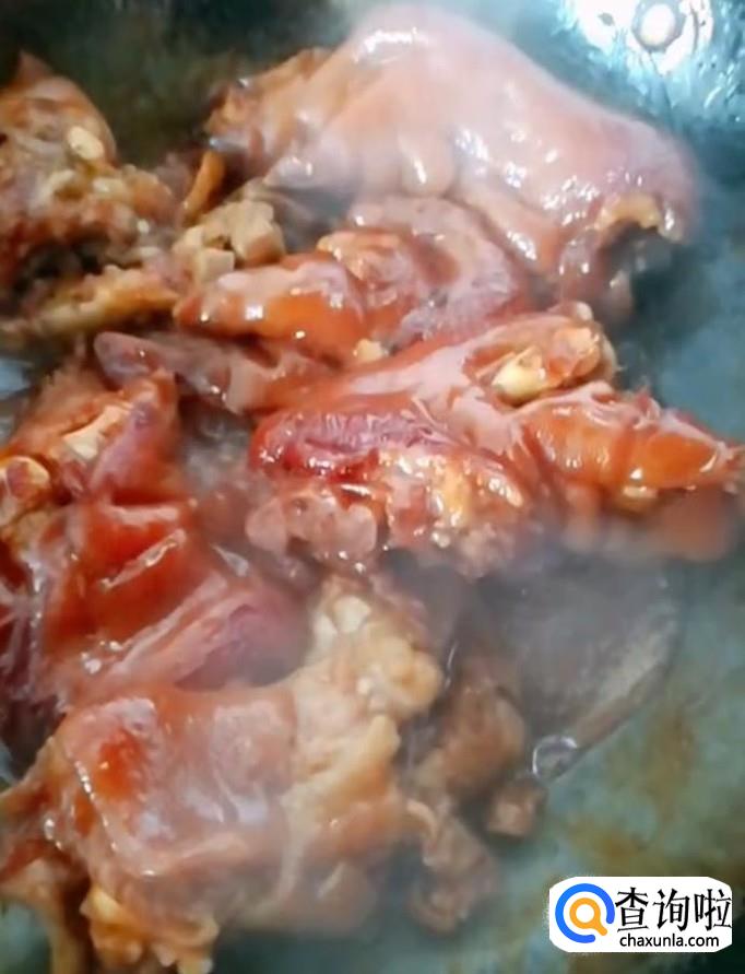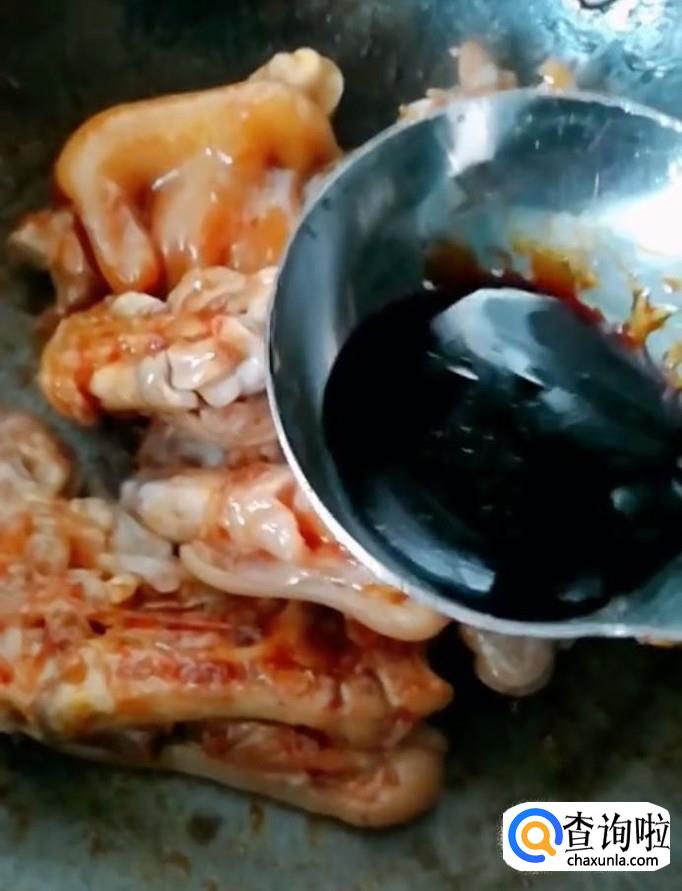 然后我们放入猪蹄,加入适量的酱油