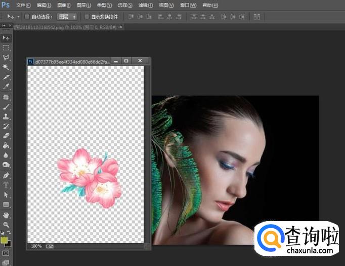同时打开两个图片后,直接把其中一张透明底色的图片,拖动到另一张图片上,即可完成操作了。