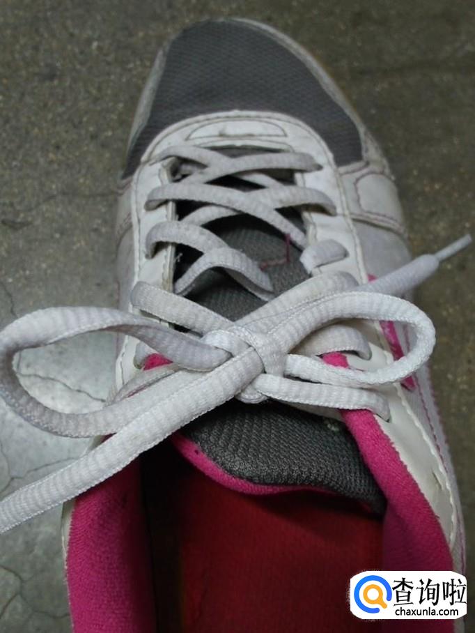 把两个套交叉在一起,像打普通结一样,再打一个结,然后把两个套拉紧,就系成了一个结实的蝴蝶结,既简单,又实用。