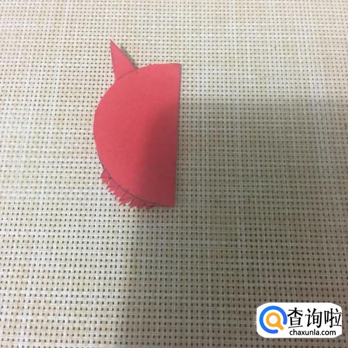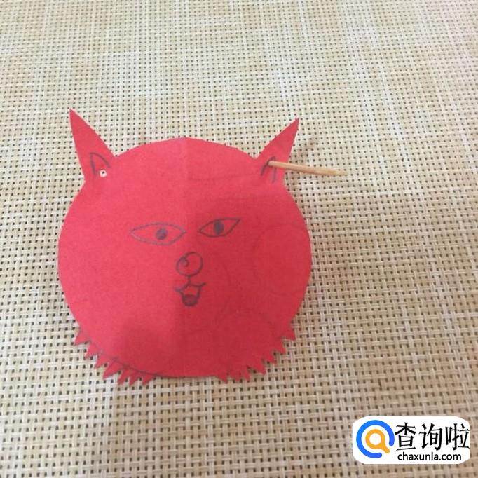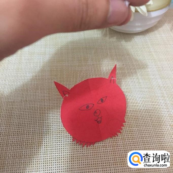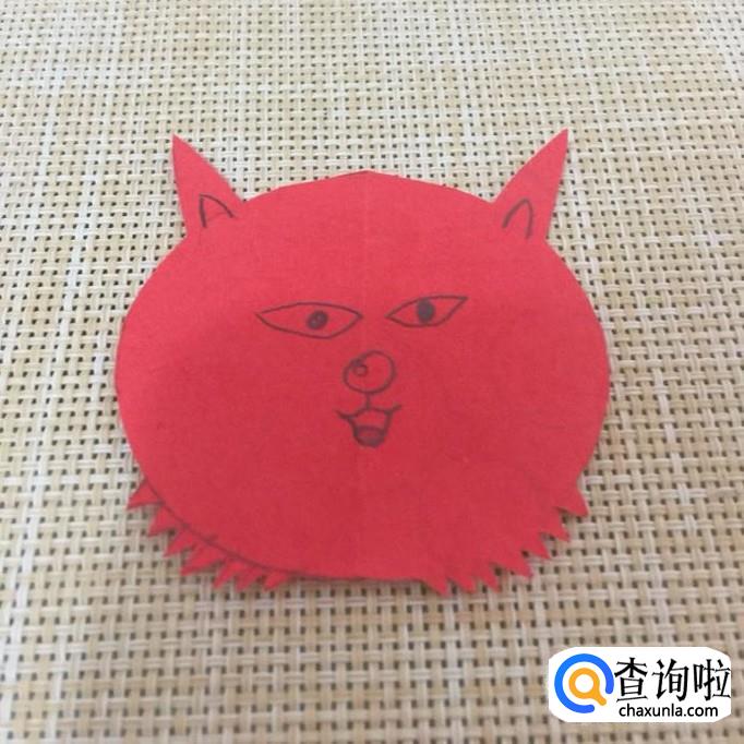 然后把剪好的小猫摊平,画上眼睛、鼻子和嘴巴。如下图所示。