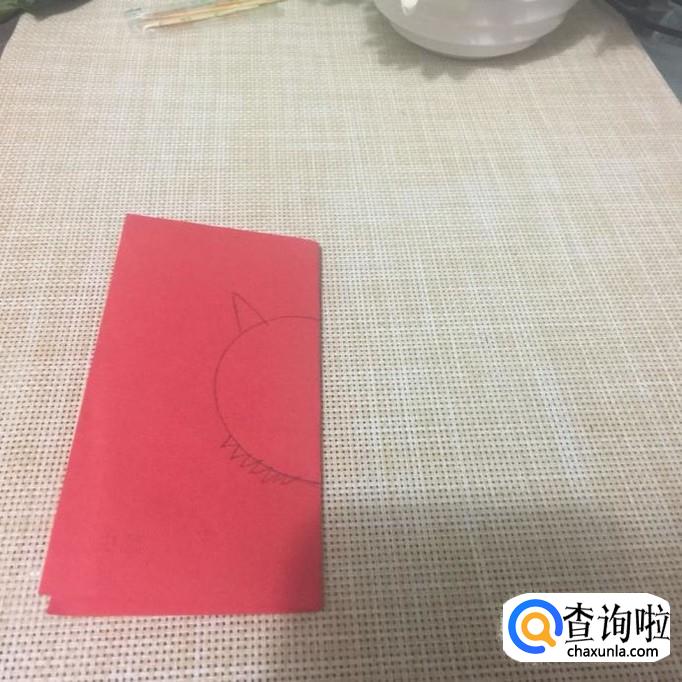 然后在正方形硬纸上画出小猫的外部轮廓,如下图所示。