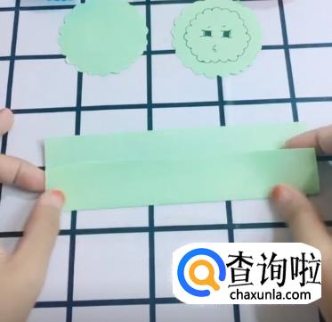 然后去一张长方形纸条,沿长边三等分处折两下。