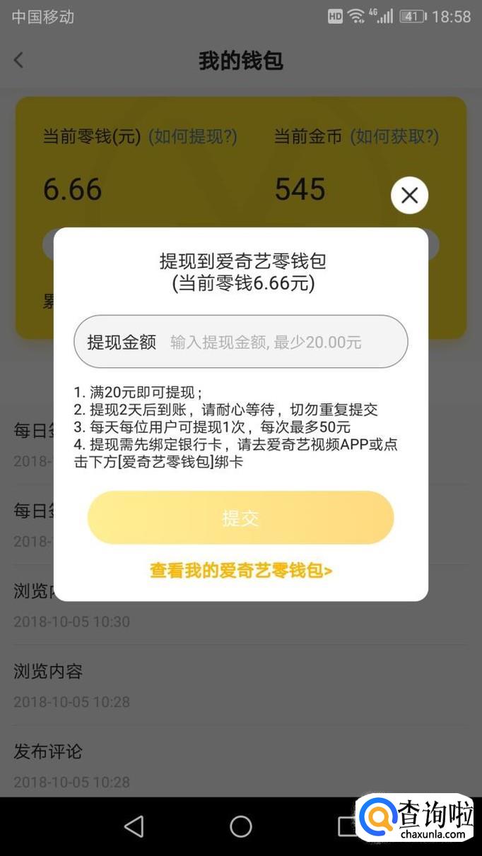 在我的钱包里面点击“去提现”,按步骤完成即可,金币余额达到20元能够提现。