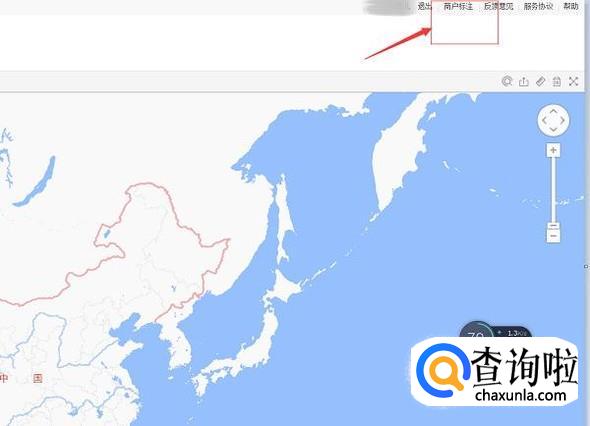 用电脑打开腾讯地图,在右上角处找到“商家标注图标”。