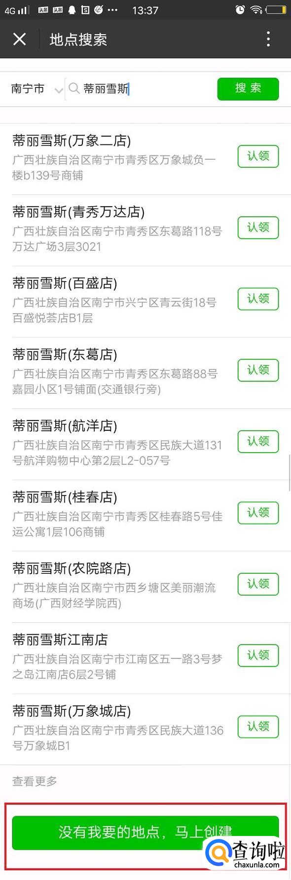 如果没有搜索出来或者搜索出来没有自己的位置,将页面拉到地步,点击“没有我要的地点,马上创建”。