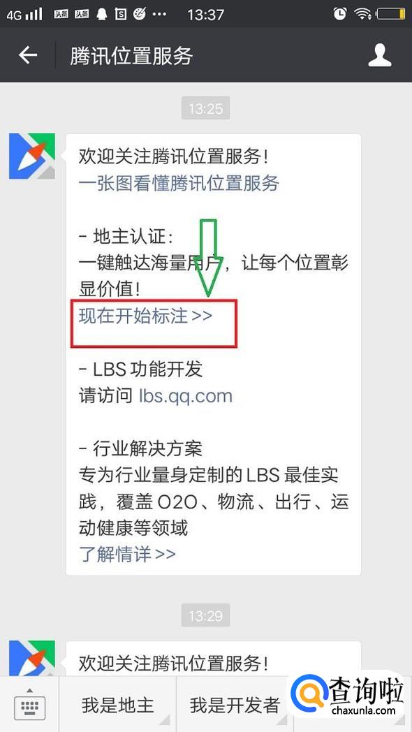 在腾讯位置服务微信公众号页面点击现在开始标注,进入标注界面搜索自己的店名。