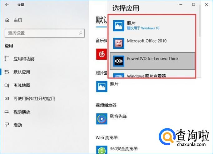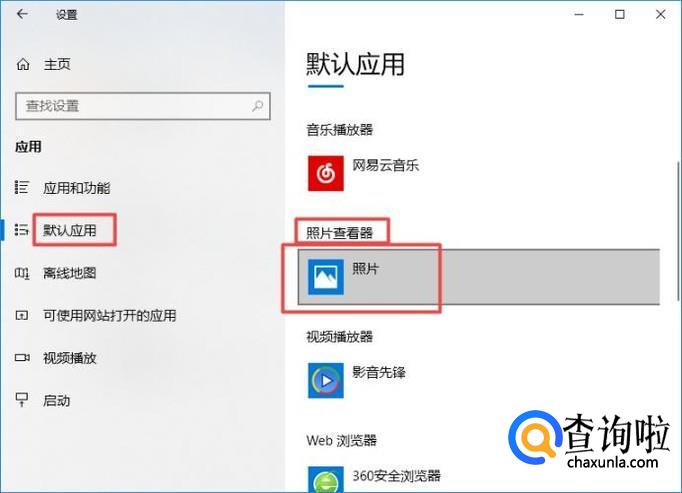 弹出的界面,我们点击默认应用,然后我们点击照片查看器下方的照片;