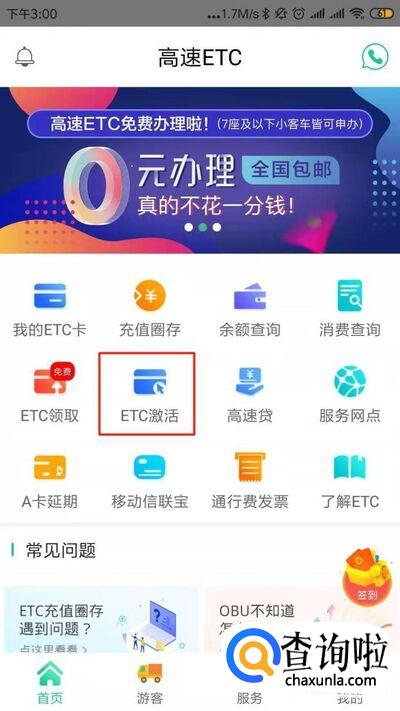 打开【高速ETC】进入主页面,注册并登陆账号,点击【ETC激活】: