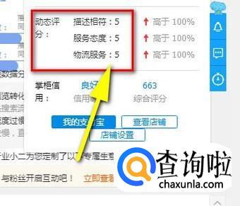 进入到店铺后台的卖家中心这个页面中,在页面的右上角这里显示着店铺的动态评分。