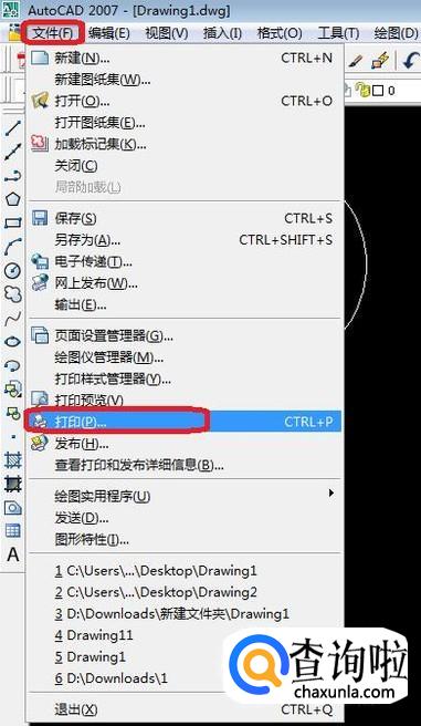 首先,我们打开需要输出的CAD图纸,点击“文件”,然后下拉菜单中选择“打印”。