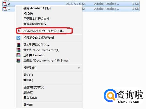 同理,我可以输出其它图形,并命名为2,这样,同一文件下,我就有两个PDF文件了,我把它们都选中后,右键点击选择“在Acrobat中合并支持的文件”(需要在电脑中安装Adobe Acrobat软件)。