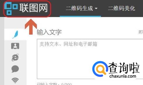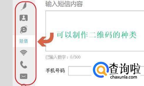 在首页的左侧我们可以看到目前该网站支持制作二维码图片的种类,其中包含了常规的文本、短信、名片等等;
