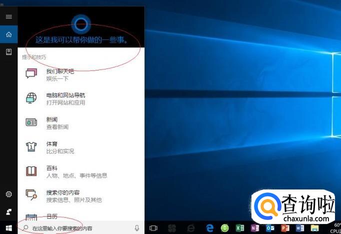 启动Windows 10操作系统,如图所示。点击任务栏搜索框,开始使用Cortana(小娜)智能语音助理。