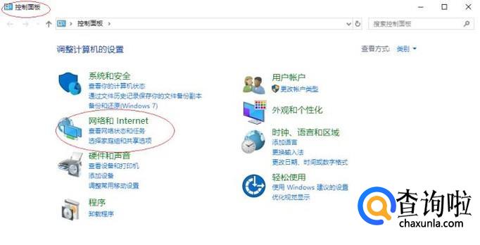 唤出"控制面板"程序窗口,如图所示。点击"网络和Internet"图标,用户可以根据自己的喜好和需要对系统进行设置。