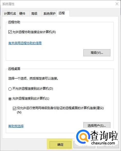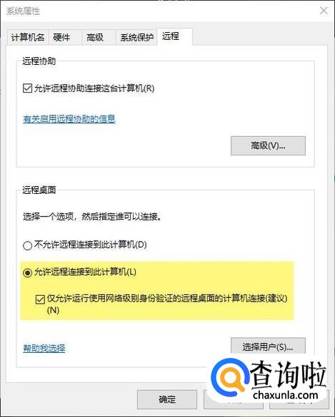 在“远程桌面”部分,选择选项允许运行使用网络级别身份的远程桌面的计算机连接。