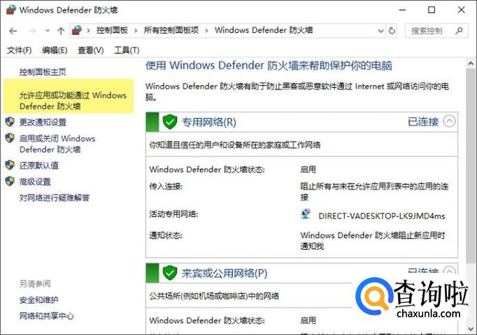 在左侧窗格中,选择“通过Windows防火墙允许程序或功能”。