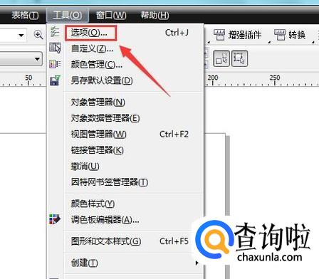 打开cdr之后,我们在工具菜单那里找到选项,如图所示: