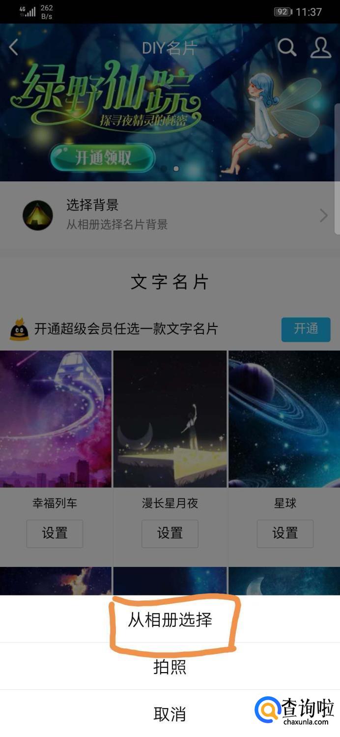 然后在弹出的新窗口点击【从相册选择、拍照】,任意选择一个就可以了。下面我们就以【从相册选择】为例,如下图所示。