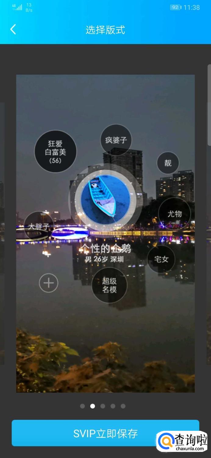 进入到【选择版式】页面之后,可以往左右滑动选择一个自己比较喜欢的样式,然后点击底部的【SVIP立即保存】就可以了。但是只有SVIP才有这个操作权限哦。