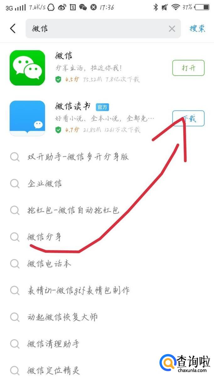 你会看到出现一个新的界面,如图1所示。点击微信后面的“下载”选项,如图2箭头所示。
